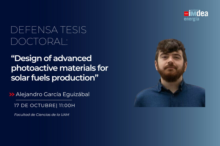El próximo 17 de octubre a las 11:00 horas tendrá lugar la defensa pública de la tesis doctoral de Alejandro García Eguizábal desarrollada en la Unidad de Procesos Fotoactivados de IMDEA Energía y dirigida por Víctor A. de la Peña, jefe de la unidad, y Marta Liras, Investigadora senior de la unidad.