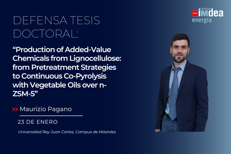 El próximo 23 de enero a las 11:30 horas tendrá lugar la defensa pública de la tesis doctoral de Maurizio Pagano desarrollada en la Unidad de Procesos Termoquímicos de IMDEA Energía y dirigida por David Serrano, jefe de la unidad, e Inés Moreno, Investigadora Titular Asociada.